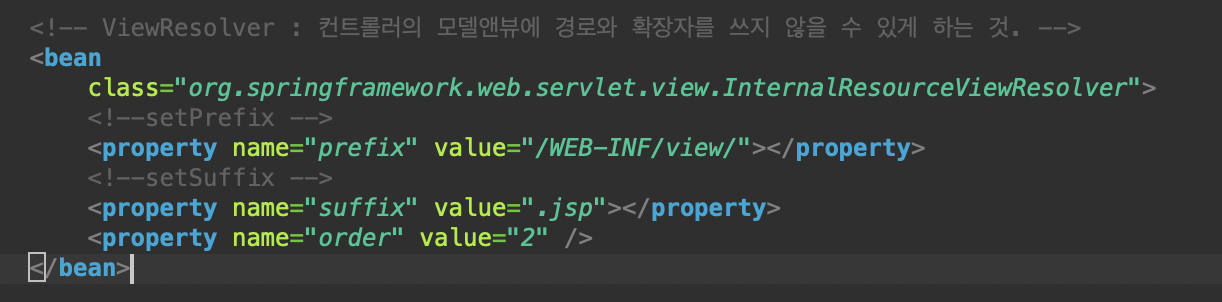 bean class는 InternalResourceViewResolver 이고,