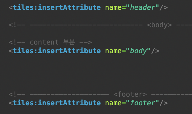 다시 layout.jsp로 돌아와서, tiles.xml에서 설정해두었던 분리된 파일들은 layout.jsp에서