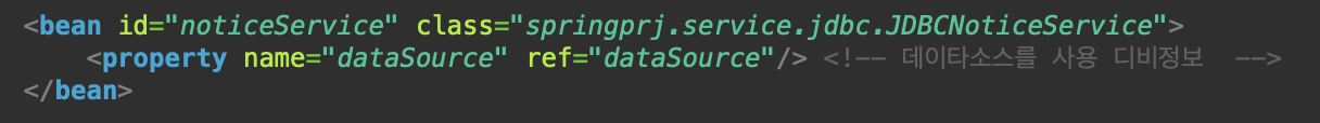 property 태그를 사용해서, ref="dataSource"를 지정해주고, dataSource를 작성한다.
