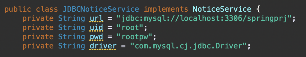 JDBC driver 정보나, ID, PW등이 사용된다.