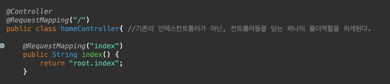 밑 index 메소드의 @RequestMapping("index")를 예시로 들자면