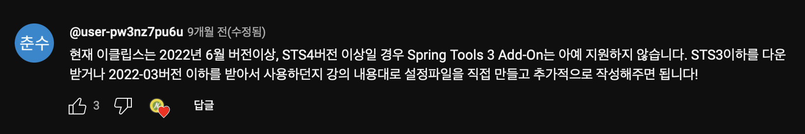 현재 이클립스 최신 버전들의 경우 Spring tools 3 Add-On은 지원하지 않는다는 것..