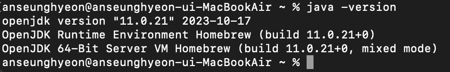 터미널에서 brew install openjdk@11 을 통해 다운로드 받았다.