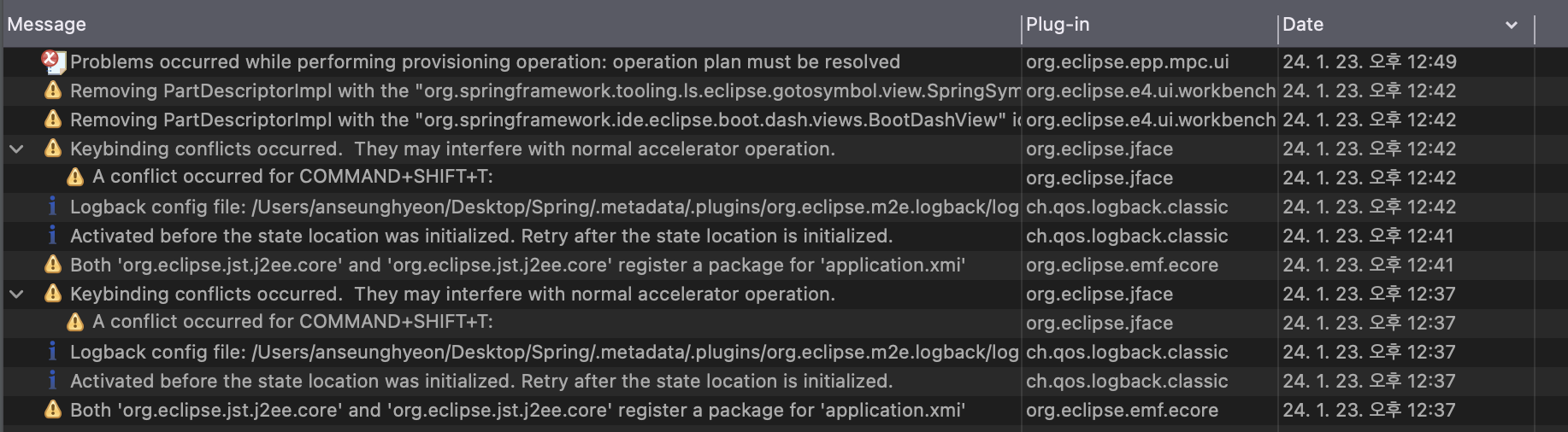 우선은 일부 해결이 되었으므로, 마저 스프링 관련 초기 세팅을 진행해보도록 하고 또 다른 이슈가 있다면 업로드해보도록 하겠다.
