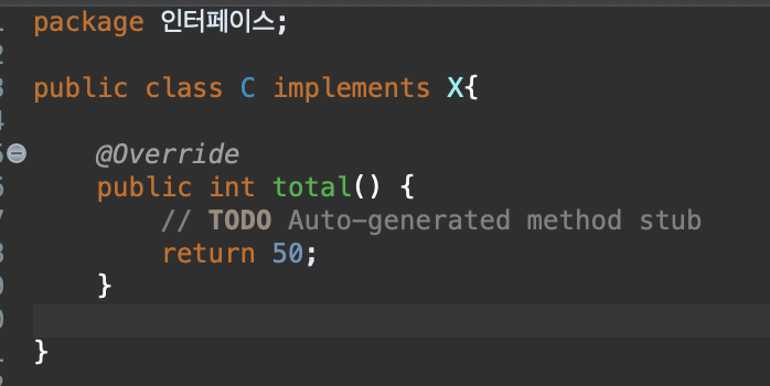 여기 새로운 Class C가 있습니다, 마찬가지로 X가 정의해놓은 메소드를 실제로 구현하는 클래스이고,